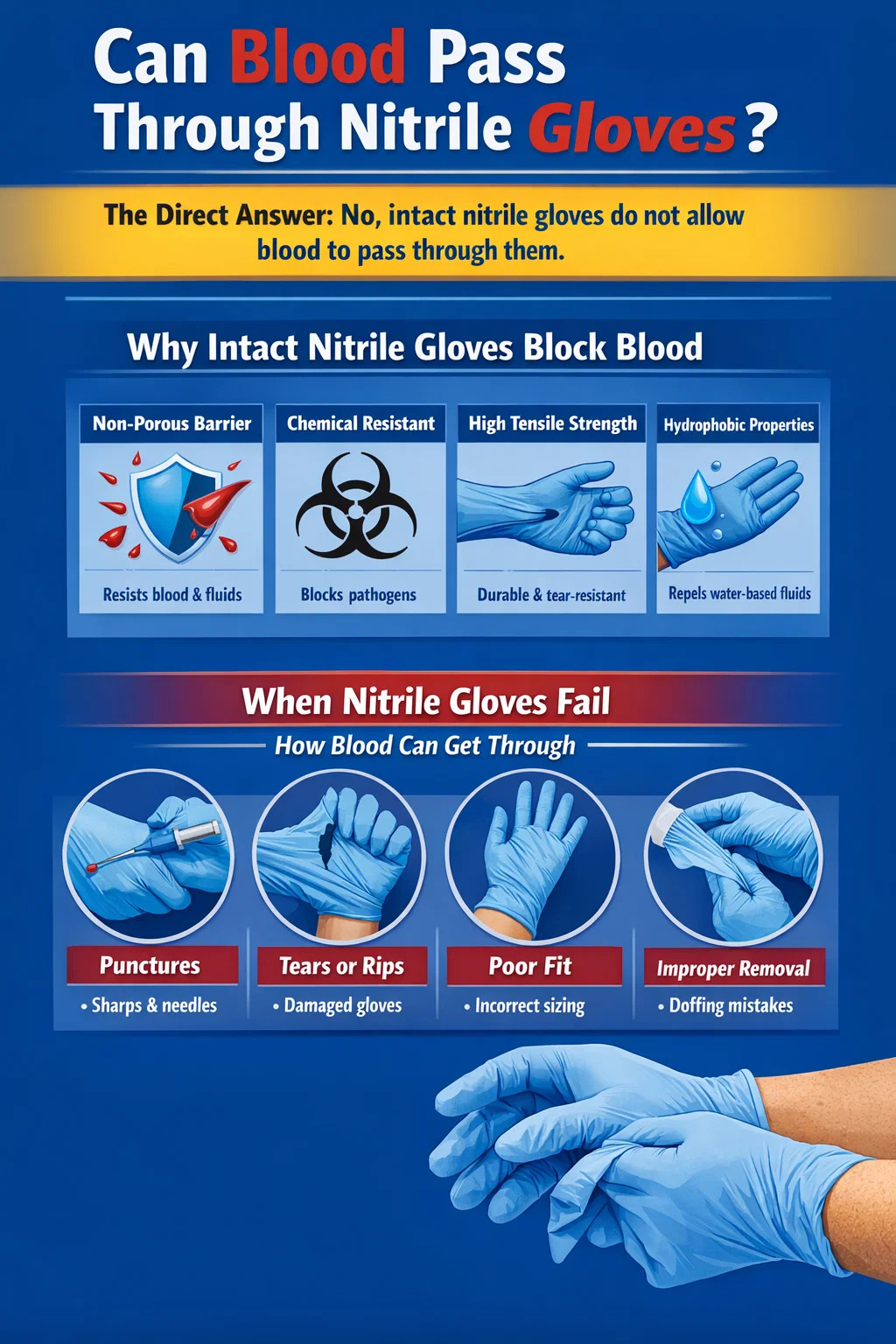 通常の状態では、 完全なニトリル手袋は血液を通過させません。 ニトリルゴムは高密度の合成材料で、血液やその他の体液などの液体に対して連続的なバリアを形成します。これが、世界中の医療、研究室、緊急対応現場でニトリル手袋が主な選択肢となっている主な理由の 1 つです。