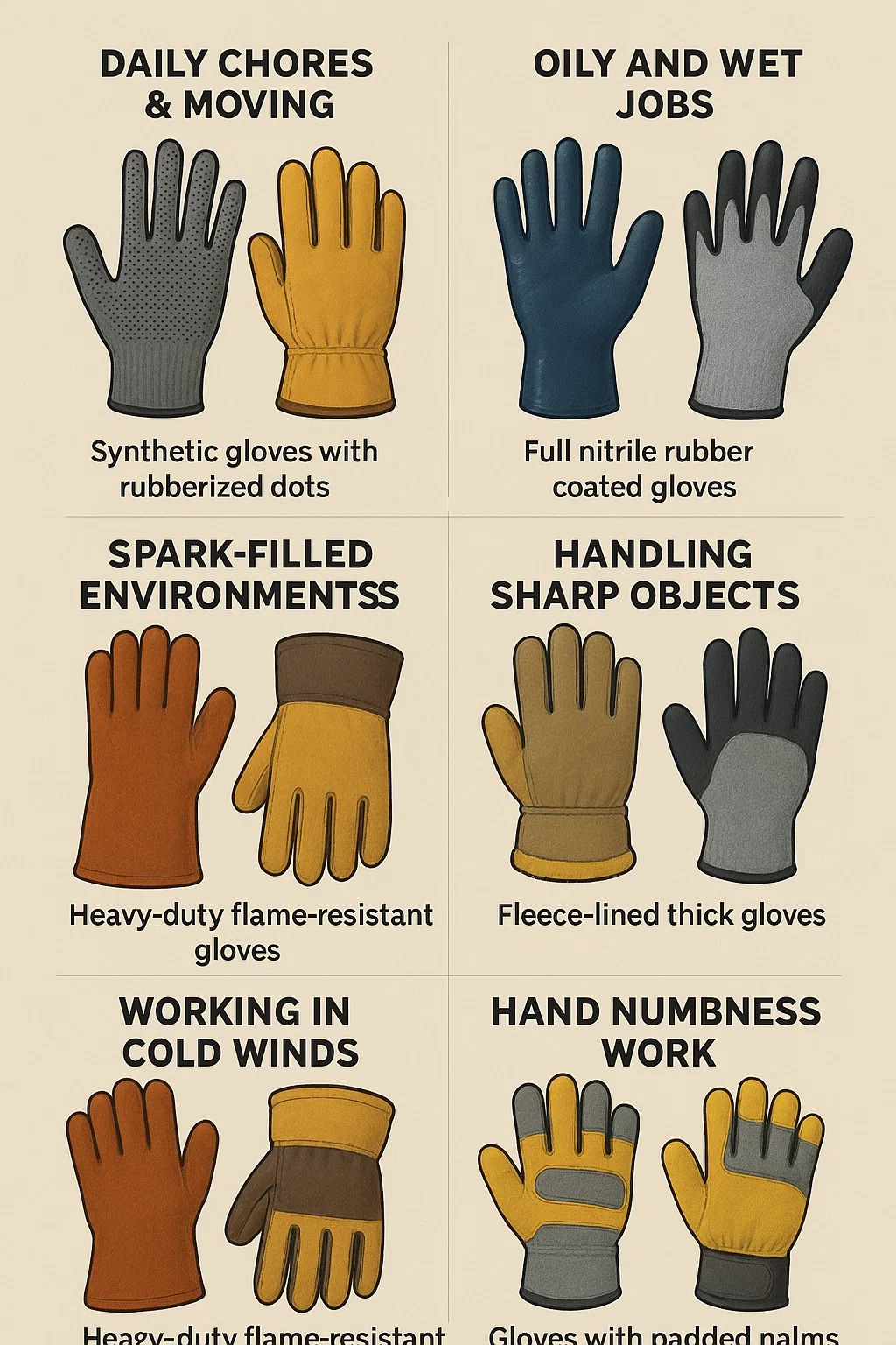本当に良いものを選ぶとき、万能の答えはありません 作業用手袋 —最適なペアは、あなたが行っている仕事に完全に依存します。重要なのは、最適な保護と機能を見つけることです。一般的なシナリオで推奨されるタイプは次のとおりです。